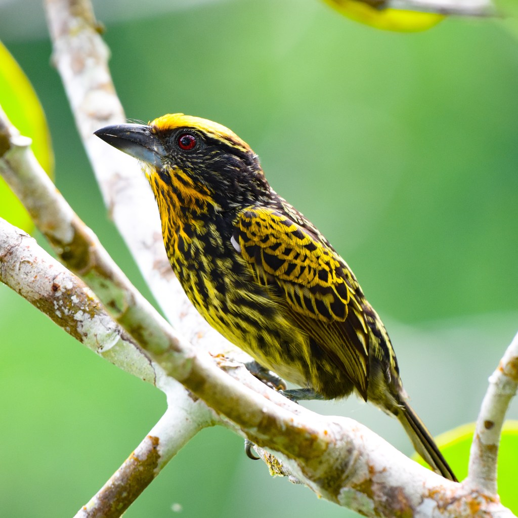 | Capito niger | capitão-de-pintas-pretas | Black-spotted Barbet | LC |